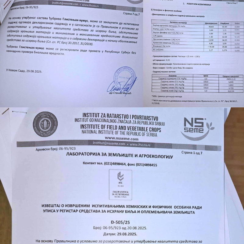 Ispitivanje fizičkih i hemijskih osobina našeg glistenjaka izvršeno je na Institutu za ratarstvo i povrtarstvo Univerziteta u Novom Sadu: